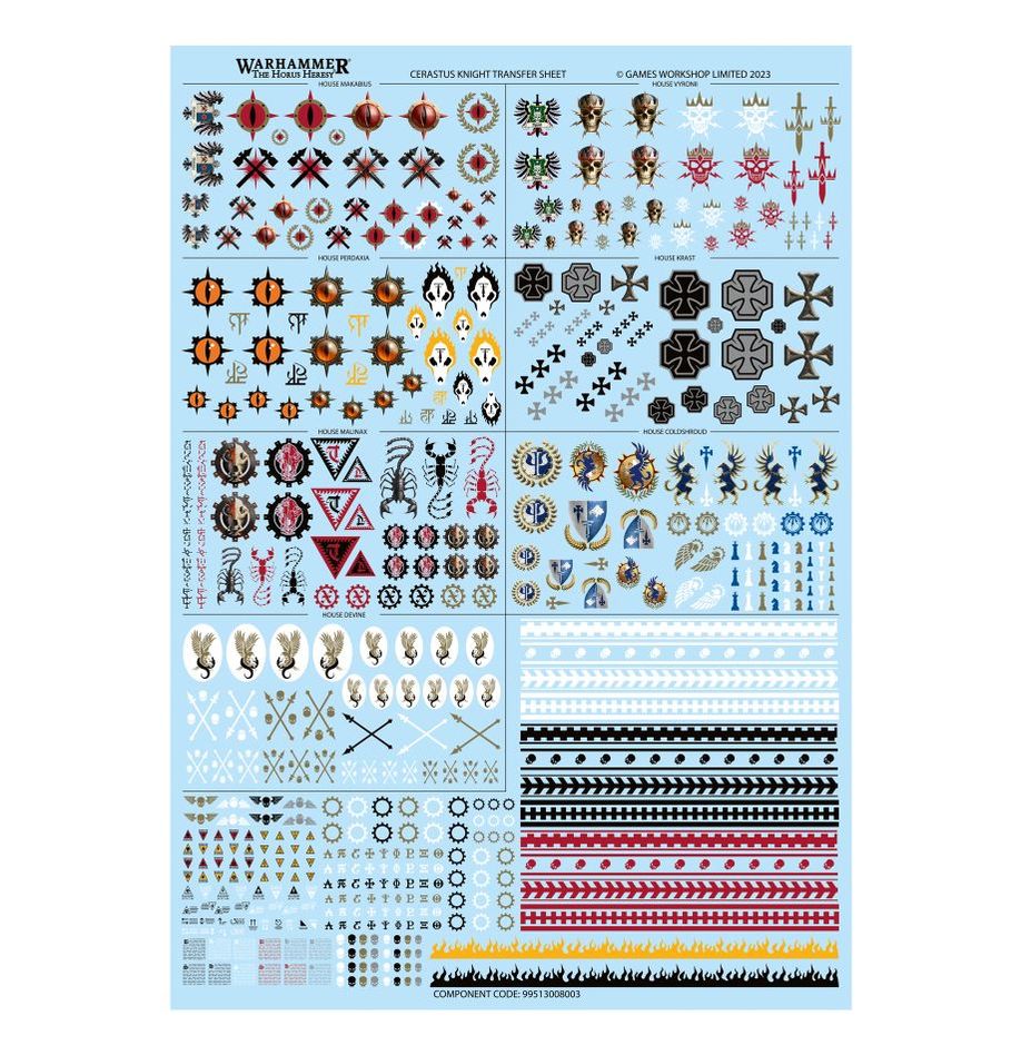 This kit comprises 208 plastic components, and comes with a Citadel 170x109mm Oval Base. It also includes an Age of Darkness Cerastus Transfer Knight Sheet, containing 517 optional markings and icons for the Knight Households of the Horus Heresy. This miniature is supplied unpainted and requires assembly – we recommend using Citadel Plastic Glue and Citadel paints.