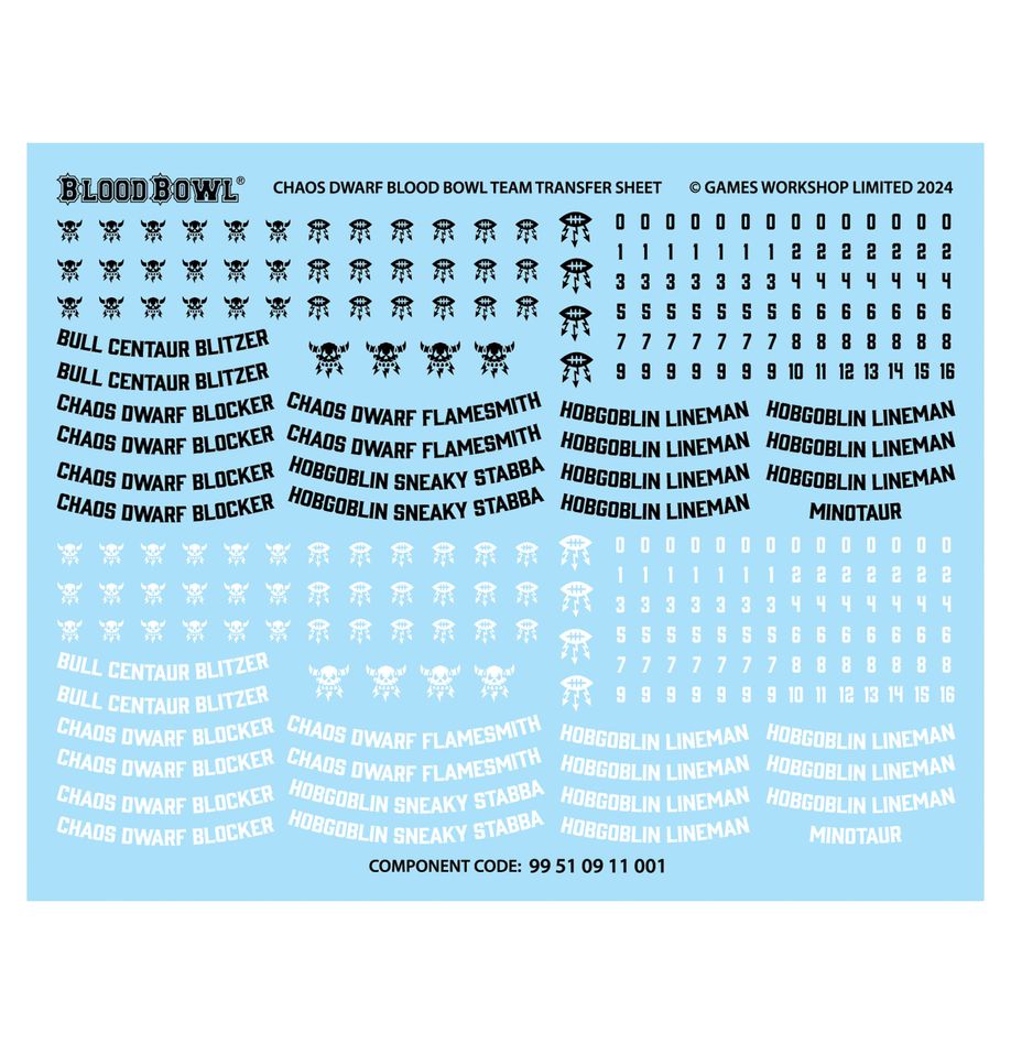This kit comprises 122 plastic components, and is supplied with 14x Citadel 32mm Round Bases and 1x Blood Bowl Chaos Dwarf Team Transfer Sheet. These miniatures are supplied unpainted and require assembly – we recommend using Citadel Plastic Glue and Citadel Colour paints.