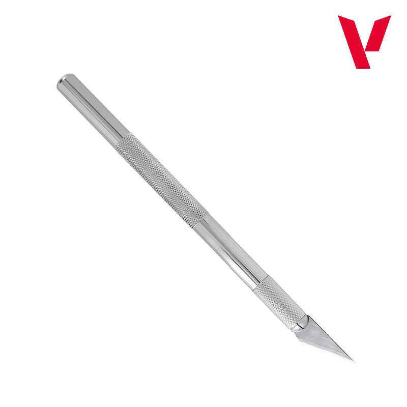 De mango torneado en aluminio, incluye cuchilla del #11, ideal para cortes de precisión, troquelados, grabado, perforación, punteado, raspado, corte y recorte. El mango ha sido diseñado para proporcionar una sujeción firme y permite un control total sobre las múltiples tareas posibles. De uso en modelismo militar, modelismo en plástico y muchos proyectos sobre miniaturas.
