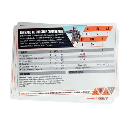 – Tarjetas de datos: mantenga los juegos funcionando sin problemas con tarjetas de referencia que detallan los operativos, habilidades, equipos, tácticas y operaciones tácticas de cada equipo, además de tarjetas de referencia para las hojas de fichas adjuntas. Incluye 23 tarjetas Kill Team: Termination Datacards, 22 tarjetas Hearnkyn Yaegir Kill Team y 24 tarjetas Brood Brother Kill Team.