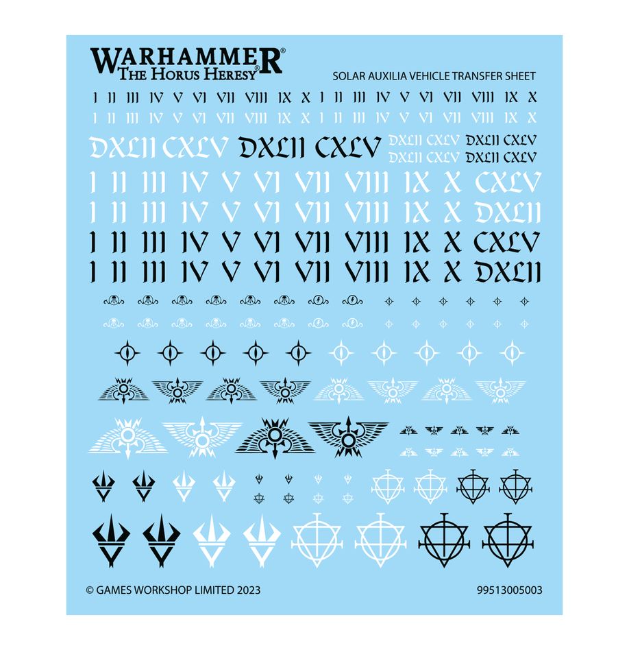 This kit comprises 170 plastic components, as well as a Solar Auxilia Vehicle Transfer Sheet containing 180 high-quality waterslide transfers. This miniature is supplied unpainted and requires assembly – we recommend using Citadel Plastic Glue and Citadel Colour paints.