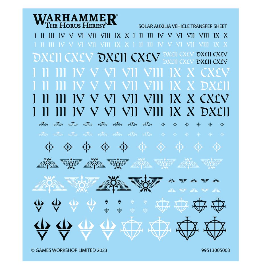 This kit comprises 187 plastic components, as well as a Solar Auxilia Vehicle Transfer Sheet containing 180 waterslide transfers. This miniature is supplied unpainted and requires assembly – we recommend using Citadel Plastic Glue and Citadel Colour paints.